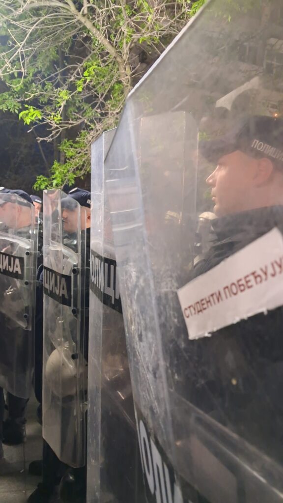 Druga smena počinje popodne. Tada se sa Noblica prelazi na kordone. Sa „izvolite keks“ na „stanite iza policije“. Sa osmeha na raskrsnici na skupove podrške onima oko kojih se danima vrte nasilje, pretnje i zastrašivanje građana.