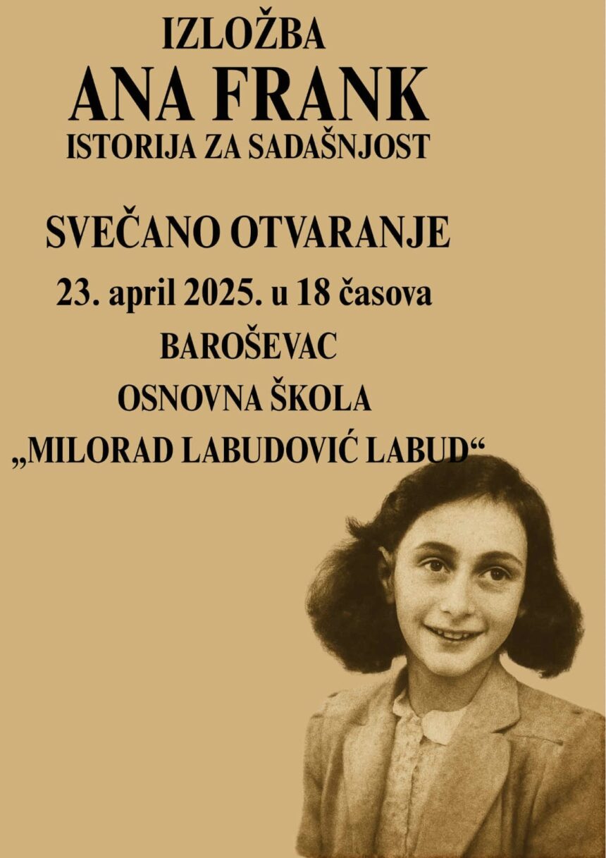 Izložba „Ana Frank – istorija za sadašnjost“ do sada je obišla više od 300 lokacija širom sveta, a u Srbiju je stigla u okviru projekta „Historija, istorija, povijest – Lekcije za sadašnjost“. Nakon svečanog otvaranja u Beogradu, izložba nastavlja svoje putovanje po gradovima Srbije, a sada je dostupna i građanima Baroševca i okoline.