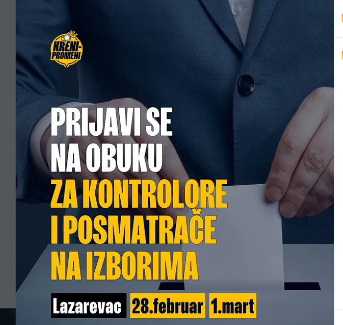 Kako navode iz Kreni-Promeni, cilj obuka je da se građani na vreme uključe u kontrolu izbornog procesa i doprinesu transparentnosti tokom izborne večeri, kako bi rezultati i izlaznost bili jasniji i dostupniji.
