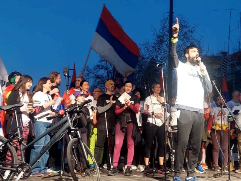 Onda su na bini dočekani maratonci/ke i biciklisti/kinje. „Pumpaj do izborne pobede koju će pokušati da nam ukradu, ali koju ćemo svi zajedno odbraniti!“, poručeno je sa bine. „Pumpaj do izborne kampanje za koju ćemo se svi još jače mobilisati. Pumpaj do izborne pobede koju ćemo zajedno osvojiti. Pumpaj do odbrane izborne pobede koju će pokušati da nam ukradu, ali koju ćemo svi zajedno odbraniti.“