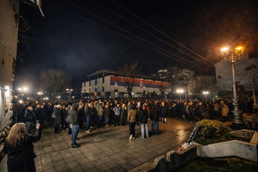 Nakon okupljanja kod Rudarske česme, građani su krenuli ka prostorijama SNS-a, ali ih je policija zaustavila i sprečila da priđu bliže.