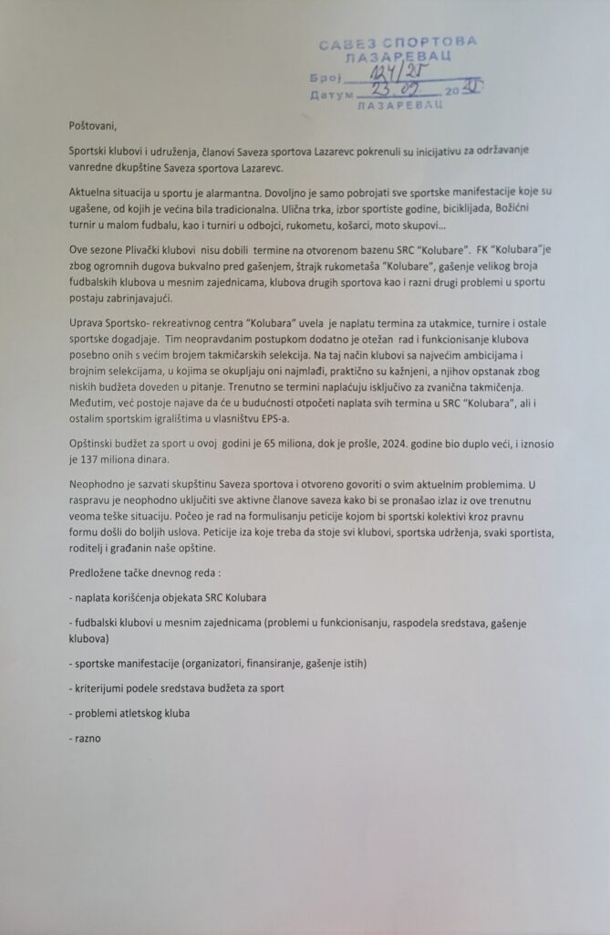 Zahtev za vanrednu Skupštinu je uredno dostavljen kancelariji Saveza, sa jasno navedenim razlozima, predlogom dnevnog reda i dovoljnim brojem potpisa – još pre skoro dva meseca. Ipak, iz Saveza nema nikakve reakcije: bez poziva, bez odgovora, bez zakazane sednice.