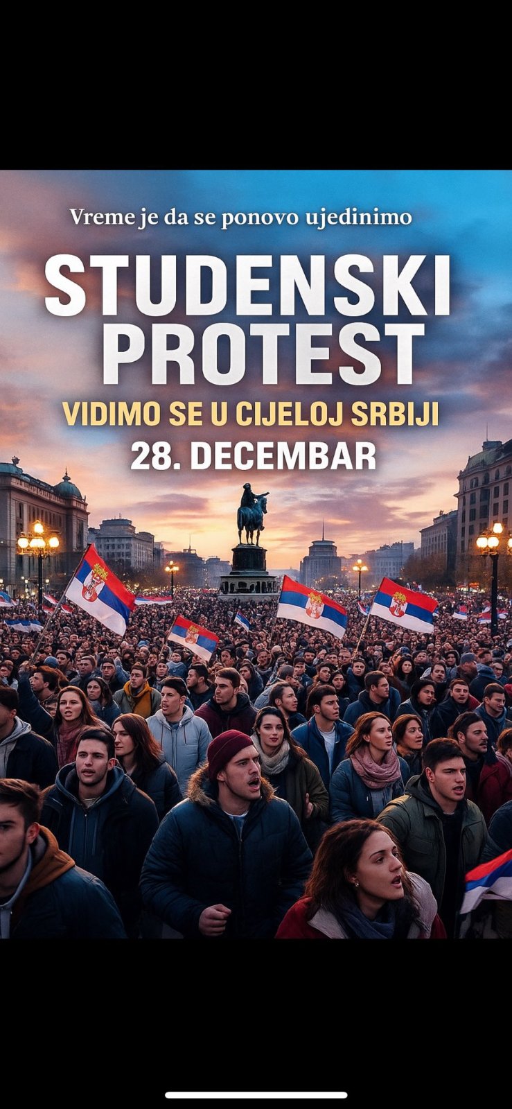 U kratkoj poruci naveli su da je cilj okupljanja „uključivanje i povezivanje“ studenata i građana, uz poruku: „Samo zajedno raspisujemo pobedu. 28.12. vidimo se širom cele Srbije“.