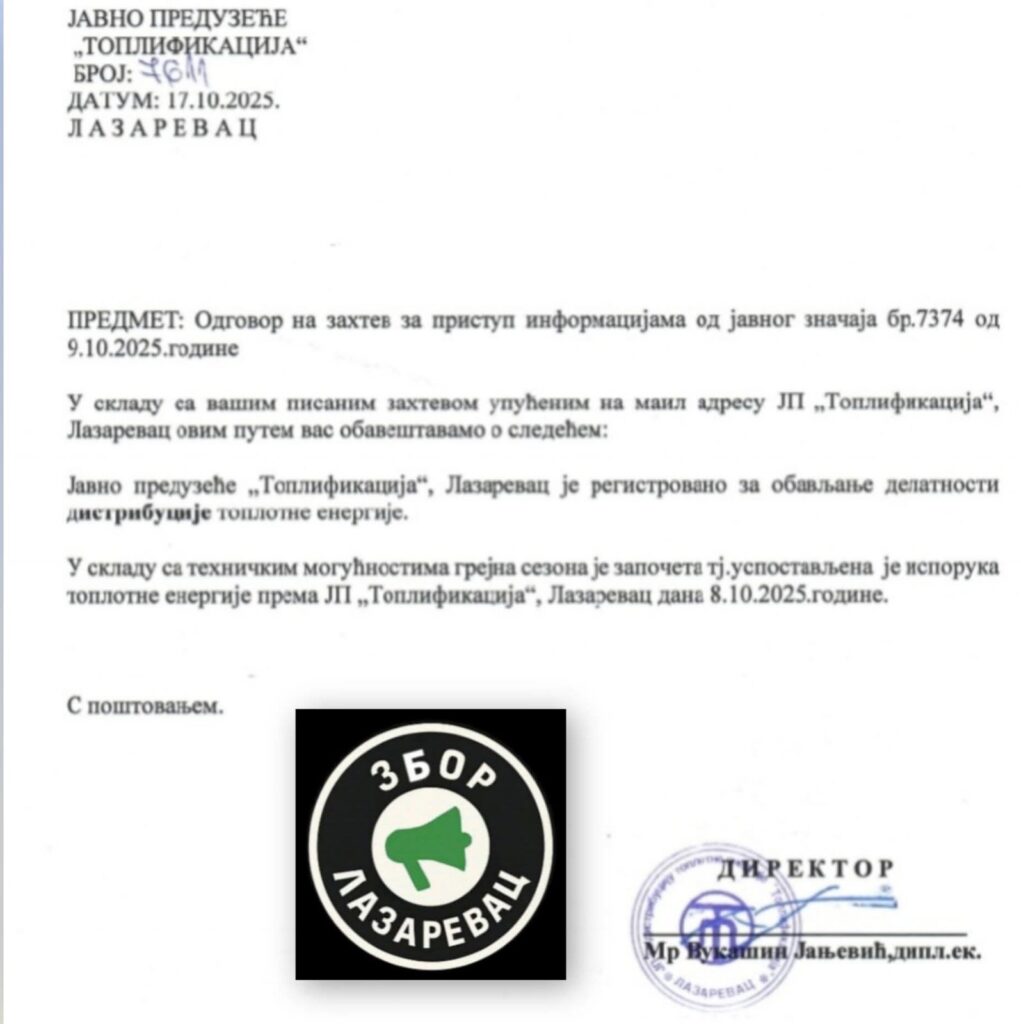 Paralelno sa ovim slučajem, Zbor građana Lazarevca podneo je 9. oktobra 2025. godine zvaničan zahtev za pristup informacijama od javnog značaja, zbog činjenice da početak grejne sezone nije započeo na vreme, uprkos javnim najavama zahlađenja.